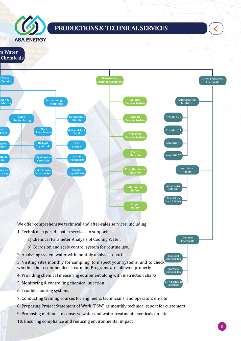 مشاهده همهشرکت آسا شیمی پینار (ASAChem)، جزء شرکت های فعال در حیطه تولید و بومی سازی مواد شیمیایی بهسازی آب در کشور می باشد که در سه دسته بازرگانی، خدمات فنی پس از فروش و محصولات تولیدی آماده همکاری با صنایع مختلف کشور می باشد. تولیدات این شرکت برای سیستم های مختلف صنایع، در قالب بیش از 30 نوع محصول منحصربفرد بوده که بسته به هر سیستم و شرایط شیمیایی آب فرموله شده و قابلیت ارتقا و بهبود دارد. خدمات بازرگانی این شرکت نیز شامل تامین انواع تجهیزات کنترل کننده و پایشگر خوردگی و رسوب می باشد که از برندهای معتبر جهانی تامین و در اختیار مشتریان قرار می گیرد. در کنار تولید محصولات و خدمات بازرگانی، شرکت آسا شیمی پینار مفتخر است با تکیه بر کیفیت، نوآوری و مسئولیتپذیری و ارائه خدمات فنی پس از فروش مطلوب به عنوان یک شریک مطمئن، در کنار صنایع مختلف کشور باشد.