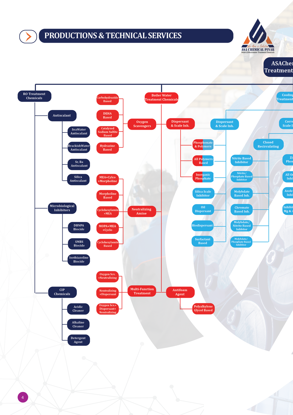 یکی از نقاط تمایز آسا شیمی پینار در بازار، فرمولاسیون اختصاصی و سفارشیشده برای هر پروژه است که با در نظر گرفتن شرایط اقلیمی، نوع سیستم و کیفیت آب مصرفی مشتریان طراحی و تولید میشود. همچنین، این شرکت دارای تیم تحقیق و توسعه (R&D)، آزمایشگاههای تخصصی، سیستم تست لوپ صنعتی، و شبکه گسترده خدمات فنی پس از فروش میباشد که تضمین عملکرد محصولات و کاهش ریسک عملیاتی پروژهها را به همراه دارد.